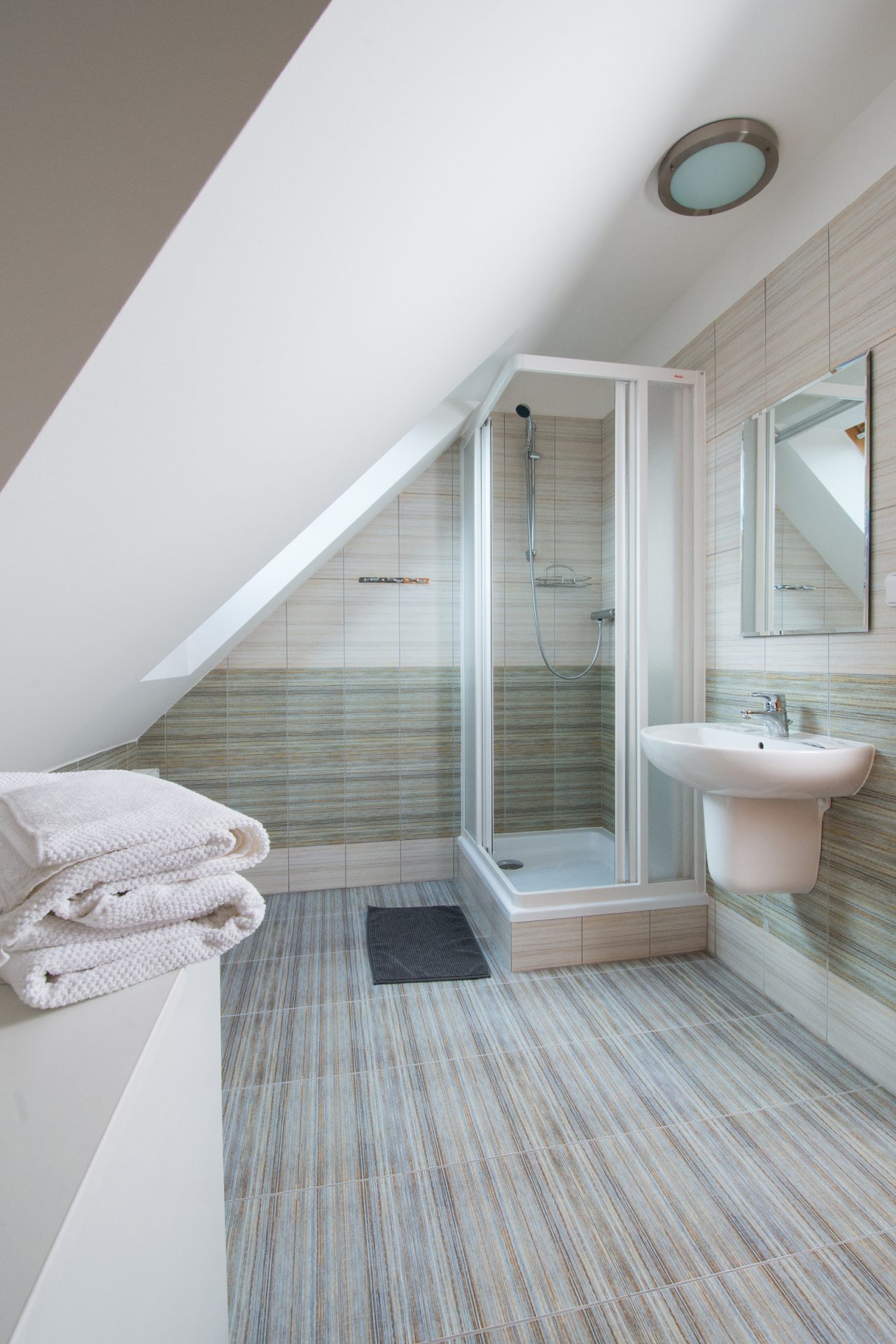 Každý pokoj je vybaven vlastní koupelnou s WC, vestavěnou lednicí, rychlovarnou konvicí, televizí, přípojkou na PC a WIFI připojení zdarma.